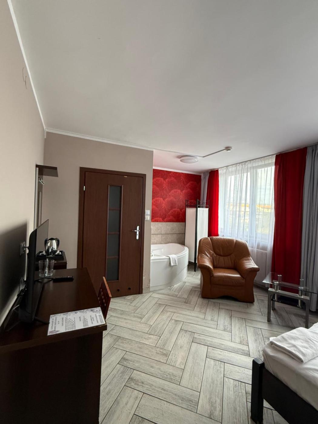 Pokój Czteroosobowy z łazienką. The quadruple room offers a tea and coffee maker and a wardrobe, as well as a private bathroom boasting a shower. The quadruple room features a sofa, a tiled floor, heating, a flat-screen TV, as well as city views. The unit has 4 beds. Powierzchnia pokoju ok.: 26 mkw. ;
